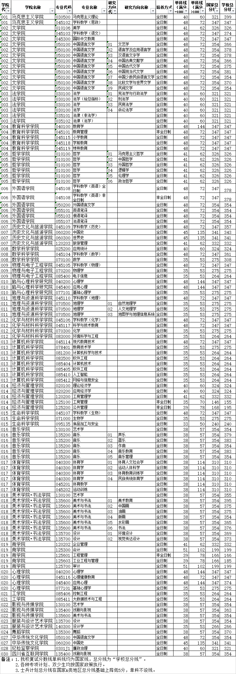 根据《教育部关于印发<2026年全国硕士研究生招生工作管理规定>的通知》(教学〔2025〕2号)以及四川省相关文件规定,经学校研究生招生委员会研究决定,我校2026年硕士研究生招生考试进入复试的初试成绩基本要求如下: